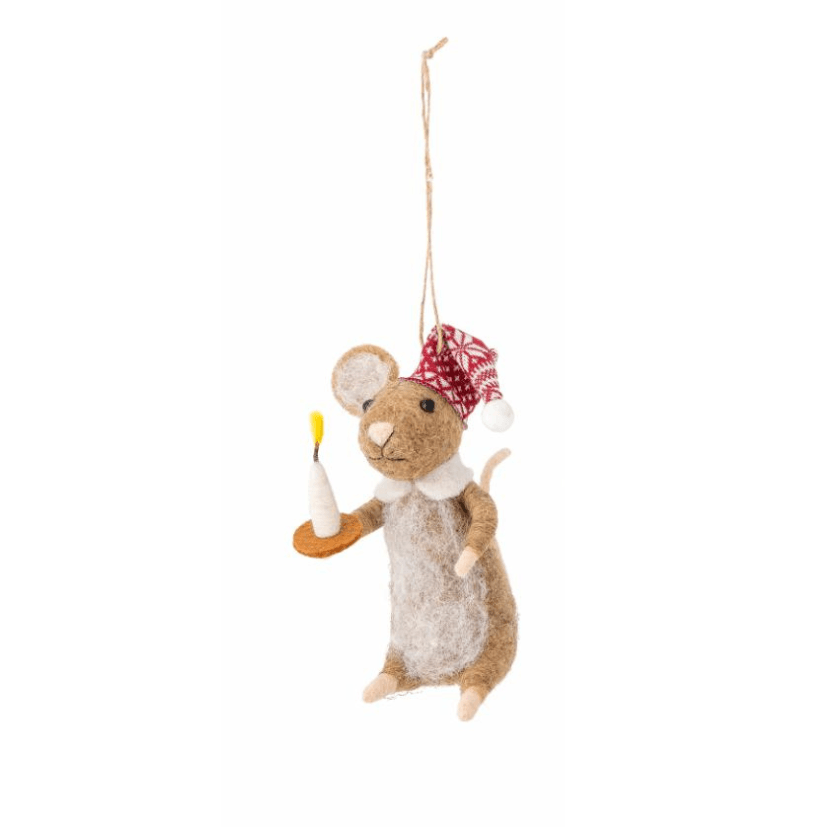 Καφέ Μάλλινο Ποντίκι με κερί -Στολίδι Peo